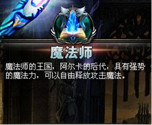 魔法师:魔法师的王国,阿尔卡的后代,具有强势的魔法力,可以只有释放攻击魔法。